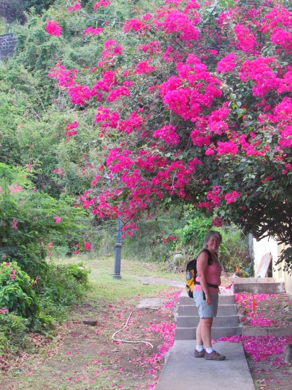 Kathou et Louiselle ont fait la piste qui menait jusqu'au cratère de l'ancien volcan, puis se sont rendues à pied au jardin botanique , qui se trouvait à deux heures de marche. Au retour elle ont eu la chance d'être recueillies par une gentille dame qui est venue les reconduire au village, leur sauvant ainsi un autre deux heures de marche.
